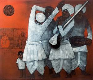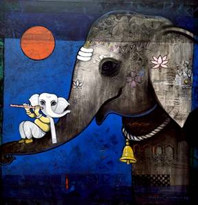 Suresh Gosavi is an ardent devotee of painting. He who forgets everything and gets absorbed in devotion The mind gets peace and it gives a new hope and energy, we can call it Shakti.To move from depression to concentration, from happiness to contentment requires devotion and faith In any form. This is confirmed by Suresh Gosavi’s picture series ‘Bhakti & Shakti’.The form of curiosity and innocence is children, the form of devotion is Varkari, the form of power is Mahakaya Elephants, unique forms of Gods and Goddesses in shrines from simple arrangement of many symbolic elements A devotional, pleasant and introspective experience while watching the paintings through effective colouring gets All artists should have this experience.